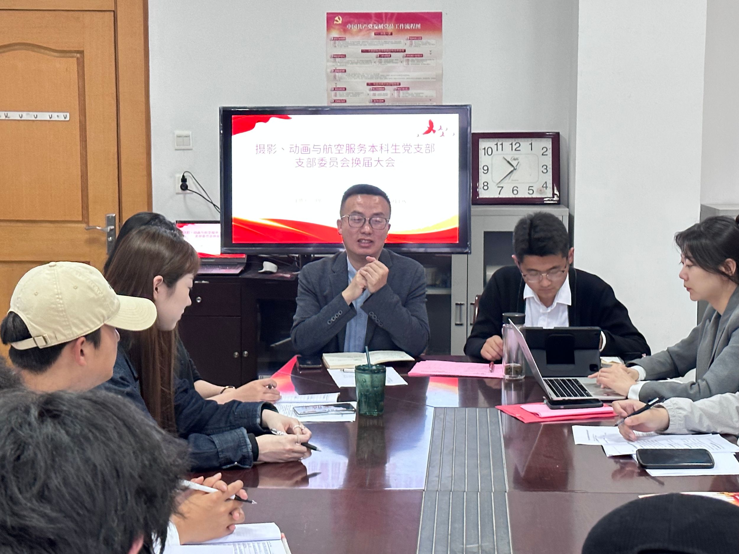 2024年4月28日下午,摄影、动画与航空服务本科生党支部于学院楼503会议室召开支部大会,会议由党支部书记刘熠主持,学院党委副书记吴青山列席,支部全体党员参会。