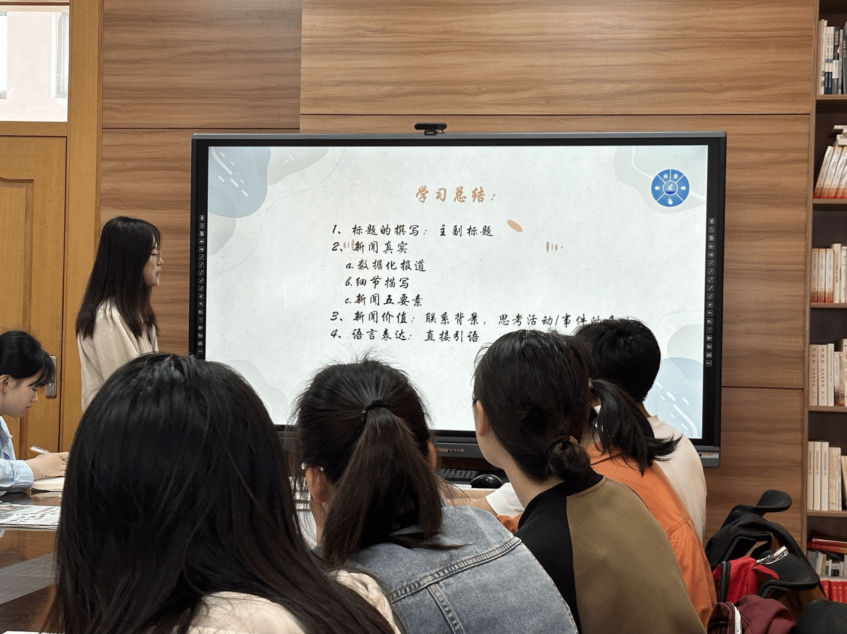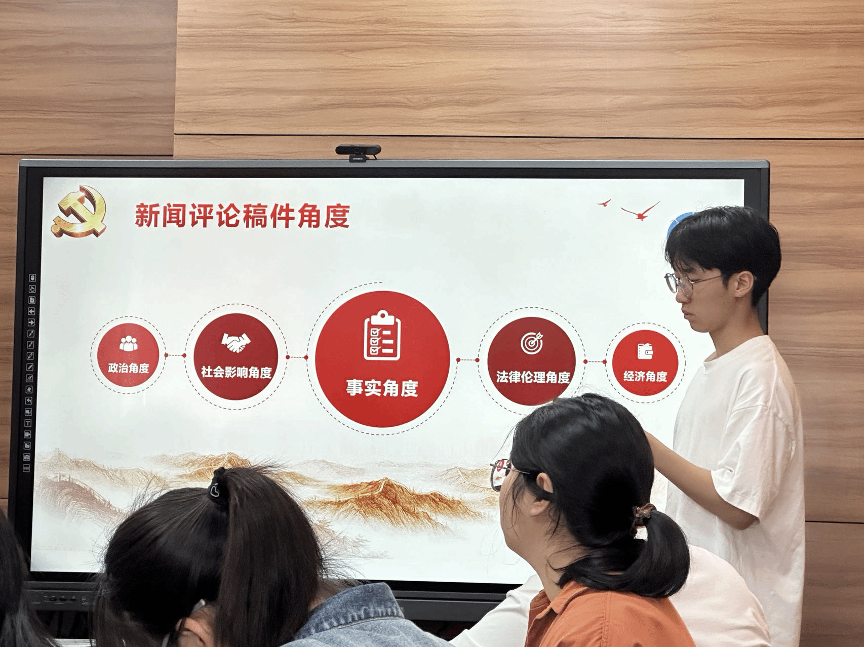 在本次活动中,领学人从写作技巧、文章特点以及不同类型新闻稿件的不同作用方面带领大家学习。在讲解后由夏杨、赵晶晶、王光甫等同学发表了自己的观点与感悟。马星宇老师对三位领学人的讲解进行点评,表示:新闻人应该更加多地将注意力关注在党报上面,并通过不断地学习提高自己的专业技能。