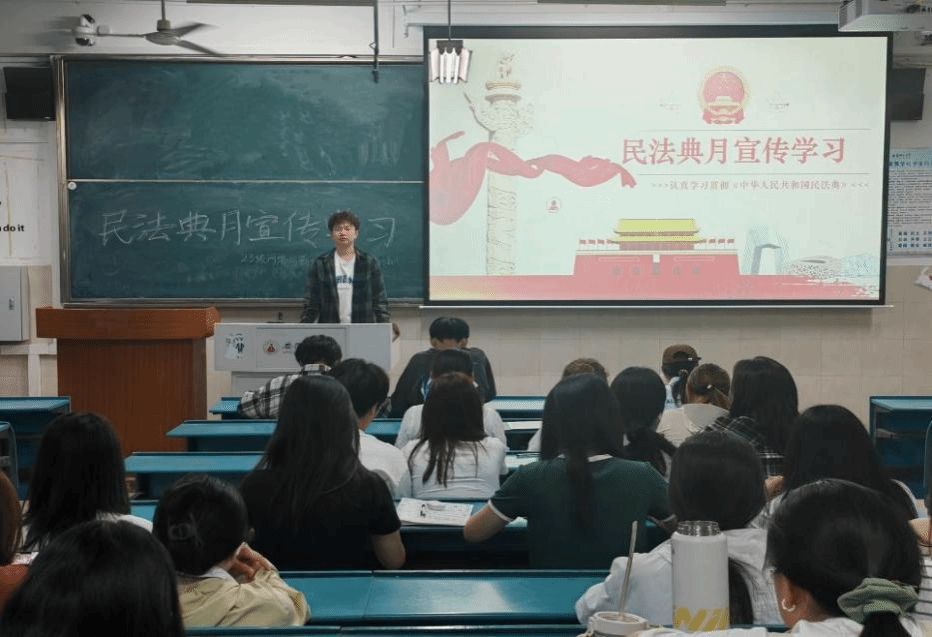 组织召开民法典宣传主题班会。在班会上,陶甘首先详细地阐释了编纂民法典的重大意义,在此基础上,陶甘深入说明了编纂民法典的总体要求和基本原则以及民法典的主要内容,最后,他重点解读了与个人相关的民法典内容。同学们认真学习、积极讨论,深入学习民法典的相关内容,提高了同学们对民法典的正确认识,进一步增强了法律意识。