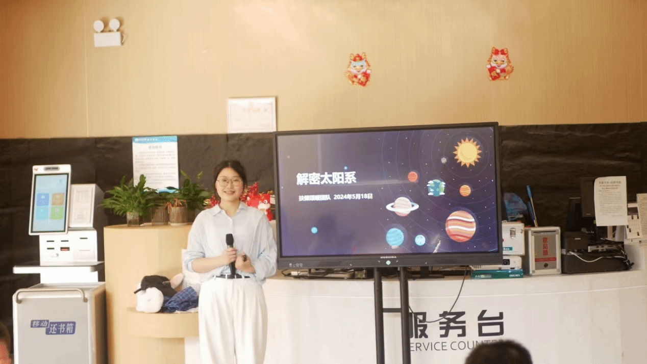 18日,23级新闻学学生何木瑶、王光甫、赵金哥前往花津书苑举办了“解密太阳系”主题活动,为小朋友们开展了一期关于探索太阳系,认识外界星球的课外知识科普课堂。