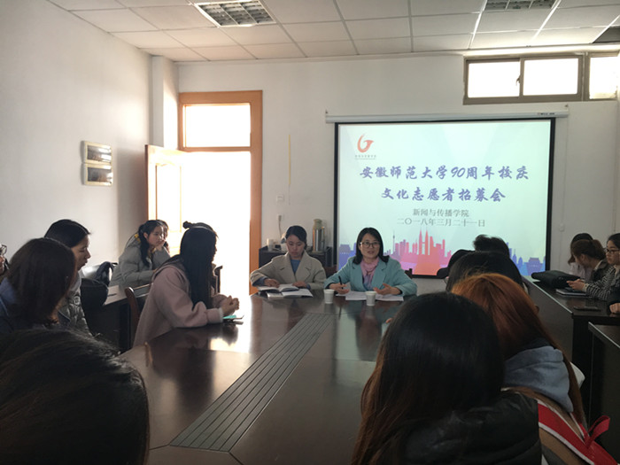 随后,每个同学阐述自己想要参与志愿服务的初衷。17级广告学专业的生一迪作为新生初来大学不久,却已经和安师大建立了深厚的感情:“我深深地被安师大悠久的发展历史和浓厚的学习氛围所吸引,遇上九十周年校庆是我的幸运,我也想给自己一个机会,尝试志愿服务,在今后的日子里和安师大一起成长。”16级网络与新媒体专业的骆贝贝也希望作为志愿者的一分子为校庆贡献出自己的绵薄之力,给归家的师大人一个惊喜,给90岁的师大送上一份自己的礼物。王霞霞、邾晶晶对同学们热衷志愿服务的行为表示肯定。