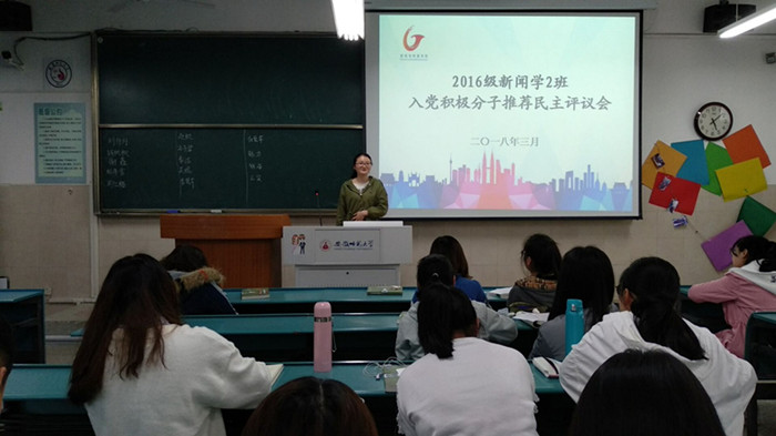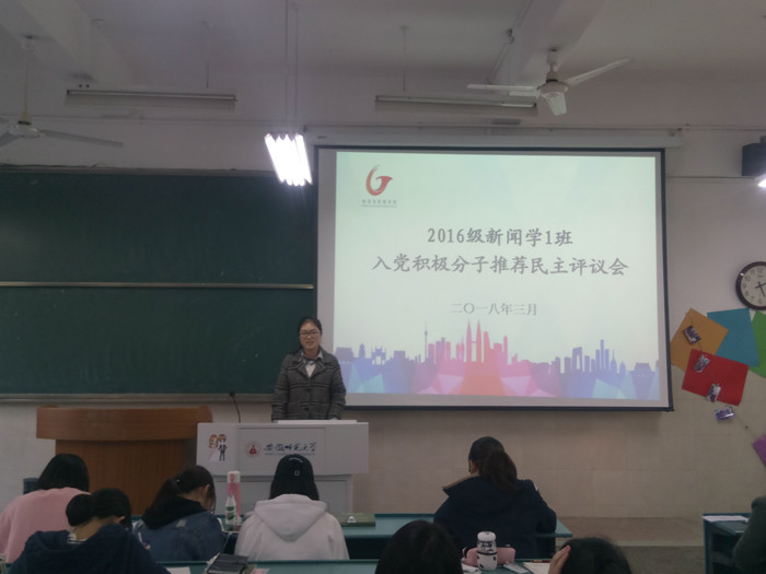 近期,2016级新闻、网新专业相继在教室开展入党积极分子推优会,杨屿璠等11位同学参与了竞选,会议由辅导员老师张雁主持。
