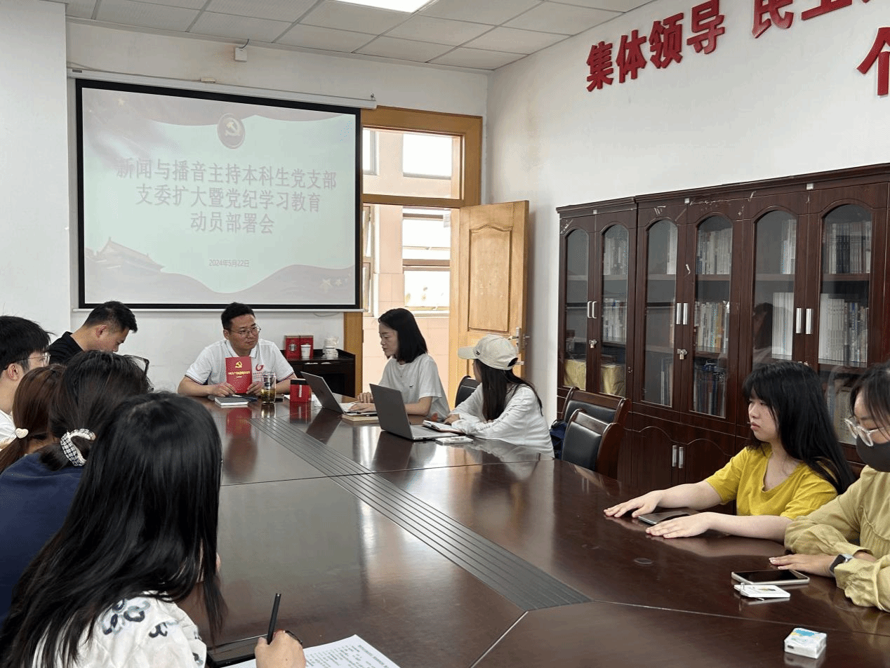 5月22日上午,新闻与播音主持本科生党支部在学院508会议室召开支委扩大暨党纪学习教育动员部署会。会议由支部书记马星宇主持,支部部分正式党员参加会议。
