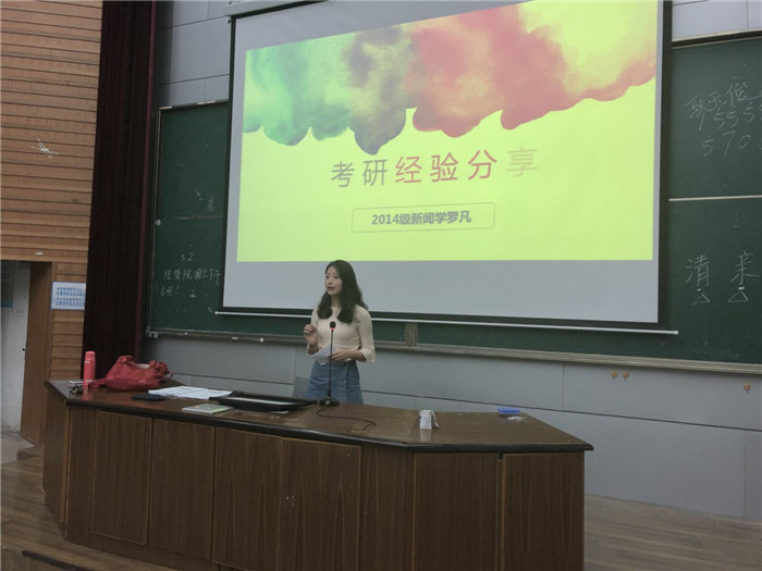 5月2日晚 7:30,在1号楼2010105召开了以“路”在脚下为主题的考研就业主题班会。班会特邀2014级考取南京师范大学的罗凡分享考研经验,邀请2015级网络与新媒体专业的王晨分享求职和实习经验,班会由辅导员老师张虹主持。