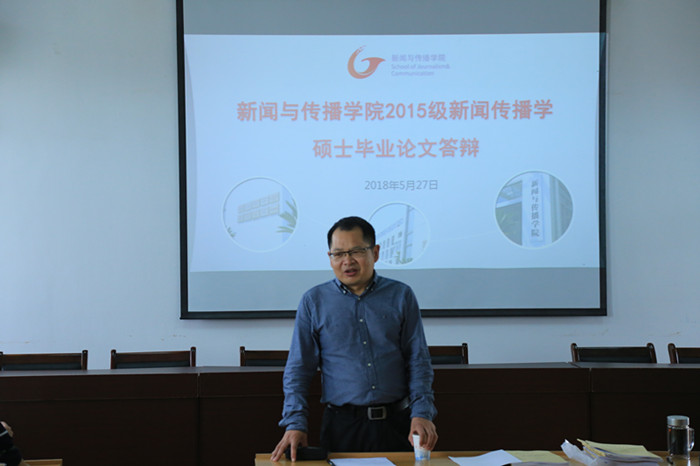 整场答辩分上午和下午两场举行,参与答辩的23名同学的毕业论文内容涉及各个新闻传播学领域,包括网络传播、新闻志向、新闻宣传、综艺节目、媒介形象、集体记忆等多个问题。在答辩开始之前,答辩主席刘传红首先强调了答辩的纪律流程和注意事项。答辩伊始,参加答辩的同学从选题意义、研究问题、内容结构、创新之处等方面对自己的论文进行简要叙述,并且对答辩组老师提出的问题进行回答。在答辩过程中,答辩委员们在充分肯定此次答辩的基础上指出部分同学论文中出现的文题不符、格式不规范、问题意识不强烈等方面的问题,希望同学们在论文写作过程中要秉着严谨负责的态度,认真对待自己论文的每一个字句。