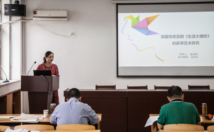 答辩学生分别从选题原因、研究背景、主要研究内容等相关方面进行论述,学生选题着眼于电影、电视剧节目、纪录片等艺术形式,涉及了叙事学、文化重构、接受美学等多个理论。答辩委员会在前期审阅论文的基础上,坚持规范严谨的学术态度,从理论观点到论证推理,从结构体系到文章逻辑,从内容呈现到,从关键词选择到文献选用等方面,进行了全面评议并提出相关问题,在论文写作规范性、语言表达的合理性等问题上给予修改意见。答辩委员们还指出部分同学论文写作中易出现的非学术化语言、特殊案例普遍化处理等问题,建议同学们要针对文章中出现的术语、研究方法、推演过程等深入剖析,提高研究严谨性,不断完善毕业论文。随后,学生针对各自问题给出了自己的解释,并深入反思写作过程中的不足和缺点,纷纷表示将会结合老师们的建议对论文进一步修改。