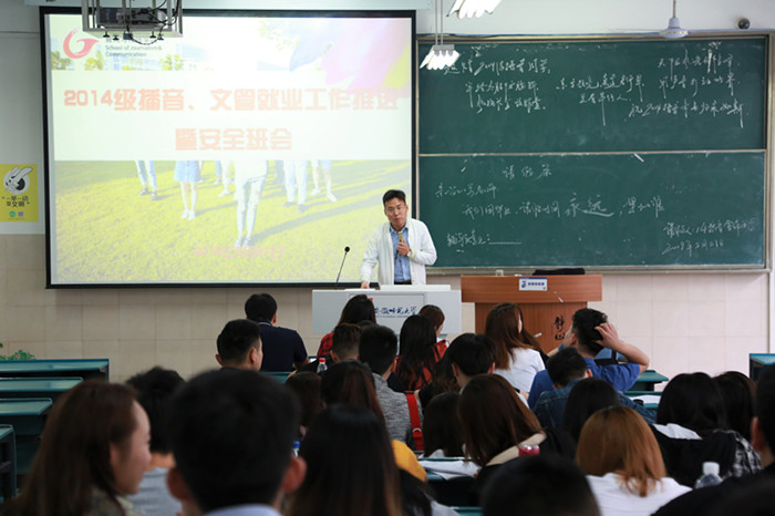 微风轻轻吹送,相聚时光匆匆。2014级播音与文管专业于5月21日在教学楼召开了“我们的2014?未来归来如斯”主题毕业班会。由辅导员马星宇老师主持,两个专业全体同学与会。