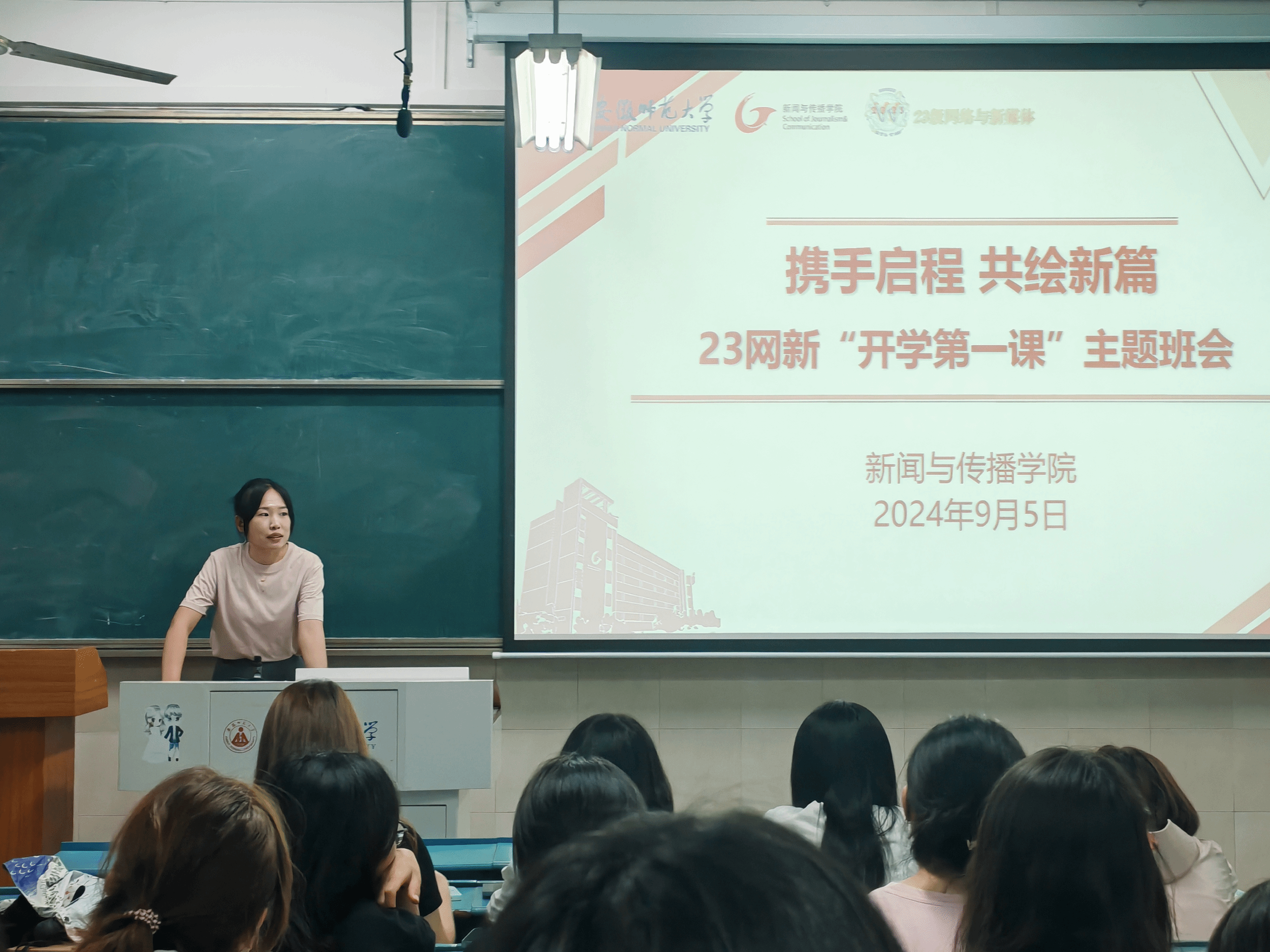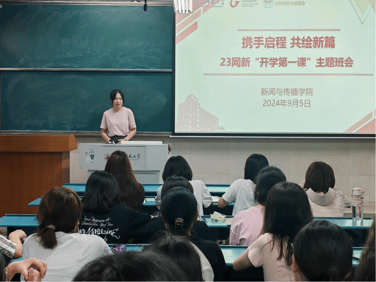为进一步优化班级学风、强化宿舍管理并提升校园生活质量,9月5日晚,2023级网络与新媒体专业组织召开“开学第一课”主题班会。班会由辅导员汪笑笑老师主持,2023级网新专业全体同学参会。此次班会旨在为新学年的学习生活奠定坚实基础,激励全体同学以更加饱满的热情和昂扬的斗志迎接大二生活的到来。