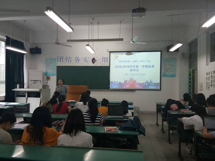 6月19日和20日,2017级网新、动画(含中韩)专业先后召开2018-2019学年选课指导会。辅导员张雁就学生们最关心的选课问题给予了详细的解读。