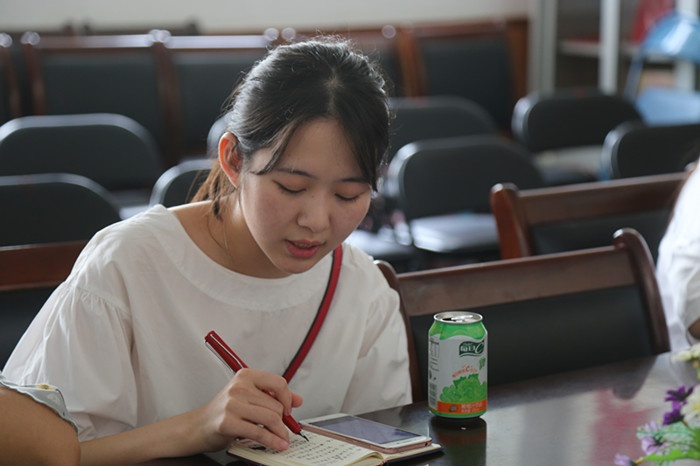 会上,张雁汇报了去金湖县踩点解的情况。她表示在与当地的实地交流中,已做好了基本的对接工作。她提出,暑期社会实践是一次专业融合实践,要求所有成员都要抱着吃苦耐劳的精神和锻炼自我的意识来提高团队调研水平。她还针对各组的工作指出问题并讨论解决方案。