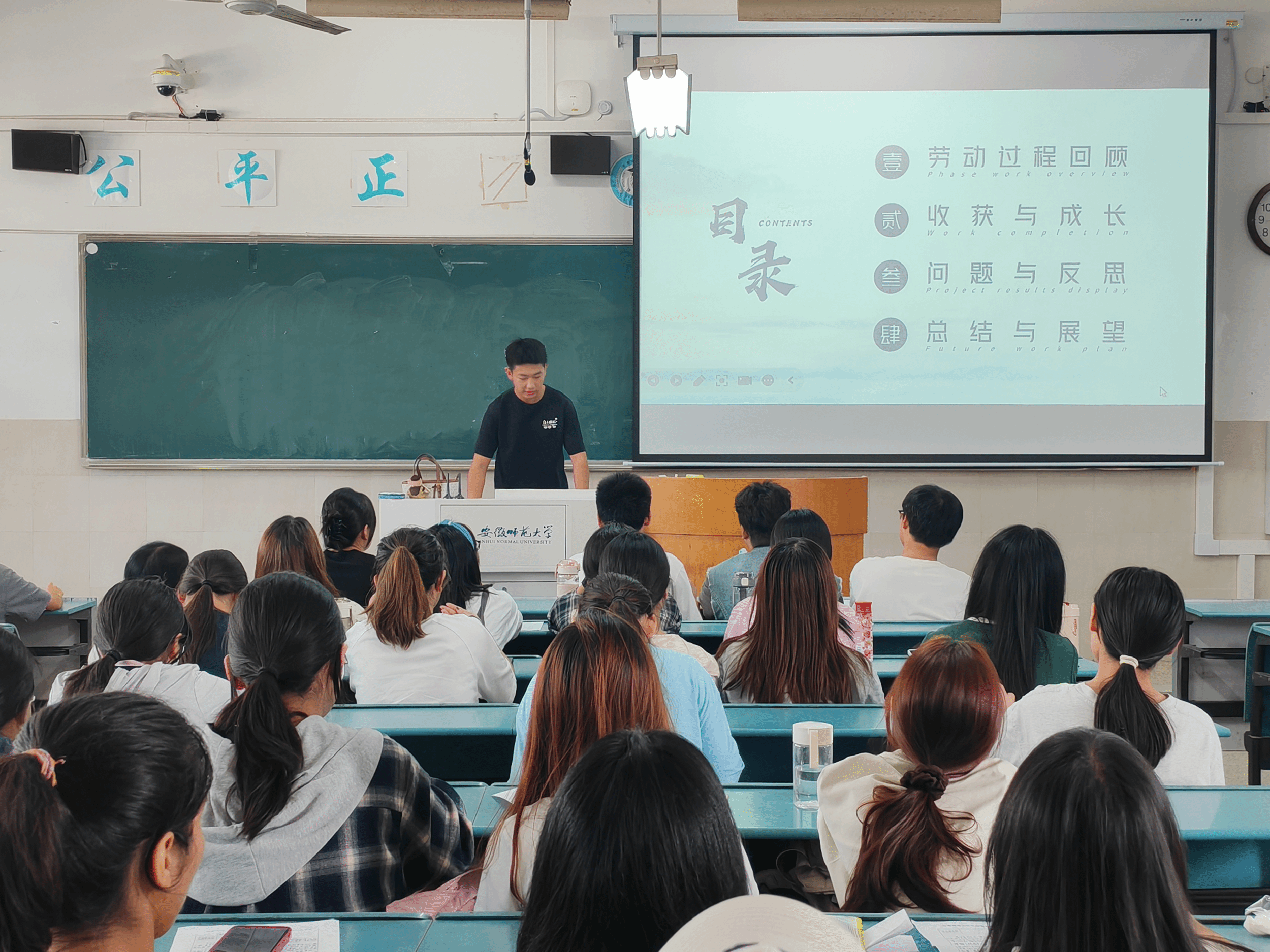 9月29日上午,2023级网络与新媒体专业在行知楼2号楼504教室开展劳动周总结汇报会,会议由2023级网新专业辅导员汪笑笑主持,2023级网络与新媒体专业全体同学参加。会议进行了劳动周实践教育课程的小组汇报、收获分享和总结。