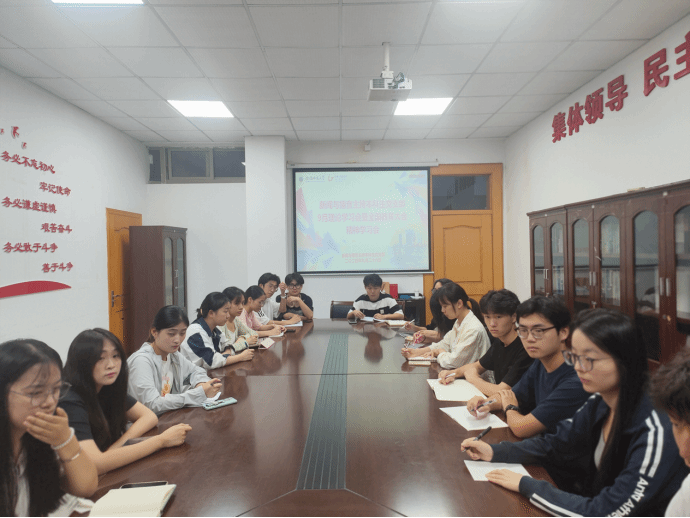 在全国教育系统广泛开展学习贯彻全国教育大会精神之际,9月26日傍晚,新闻与播音主持本科生党支部开展了集中理论学习。支部书记马星宇为大家讲解了《新时代两次全国教育大会精神解读》的专题党课,支部在校党员和各年级入党积极分子线下参会,部分因实习、推免、求职不在校的党员线上参会。