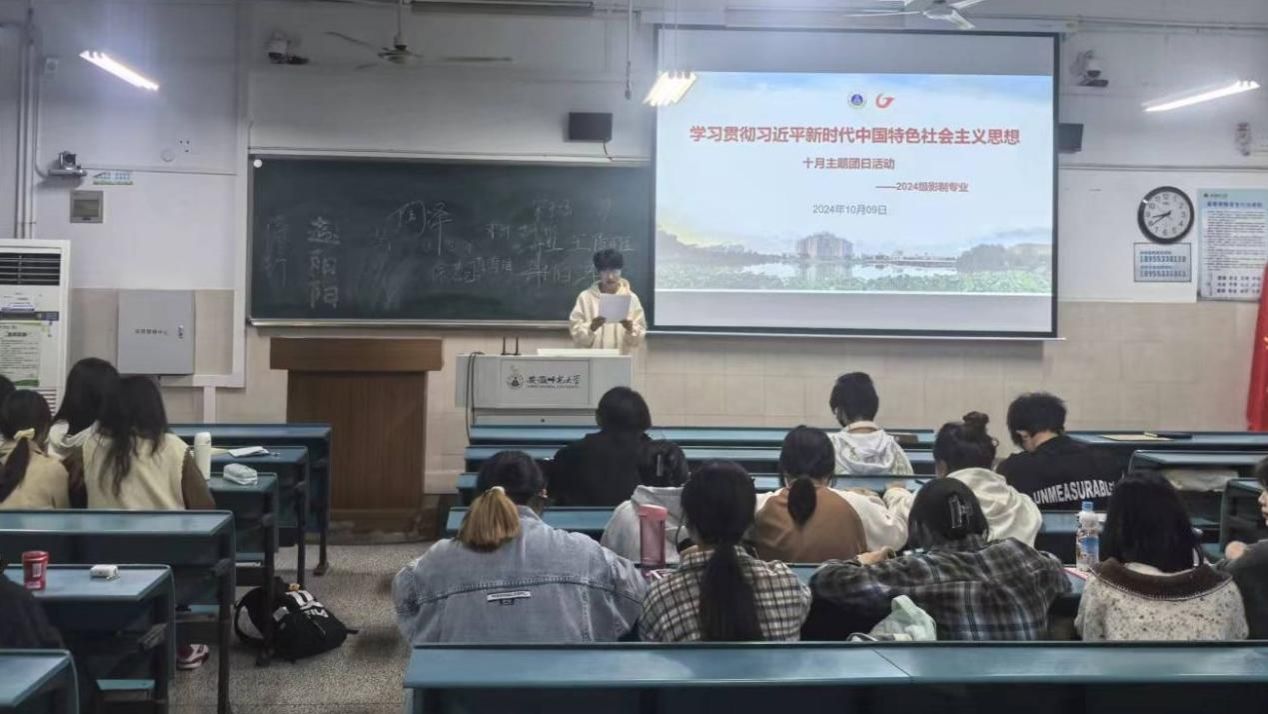 10月9日晚,在教学楼2040401教室,一场别开生面的主题团日活动如期举行。这次活动旨在加强团员之间的凝聚力,提升团队协作精神,并围绕“学习习近平新时代中国特色社会主义思想”主题进行深入探讨与学习。活动由邢旺主持,2024级影视摄影与制作专业全体学生参加。