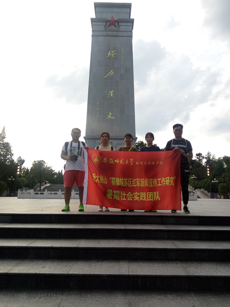 7月15日下午,德赢AC米兰合作伙伴赴大别山“鄂豫皖苏区红军新闻宣传工作研究”研究生暑期社会实践团队来到六安市金寨县红军广场,先后前往金寨县革命博物馆、金寨县烈士纪念馆、金寨县革命烈士纪念塔、金寨县红军纪念堂等地点,进行参观学习,开展调研工作。