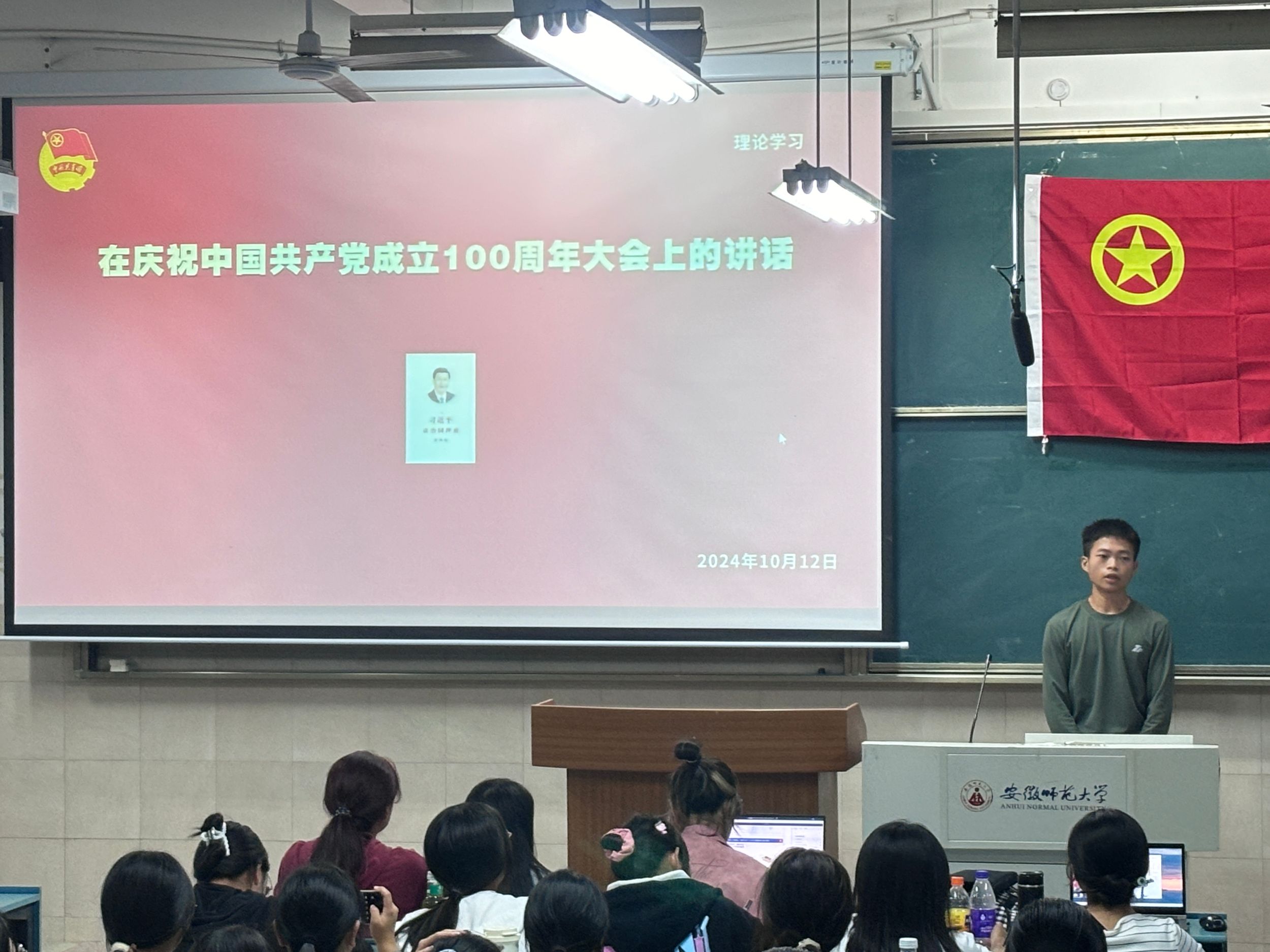 2024年10月12日晚,德赢AC米兰合作伙伴2024级新闻学一班团支部、二班团支部在教室2050302联合开展十月主题团日活动。此次活动由新闻学一班团支书廖一诺主持,新闻学二班宫鑫鑫教唱团歌,新闻学二班团支书肖融开展理论学习,24级新闻学全体团员、青年参加。