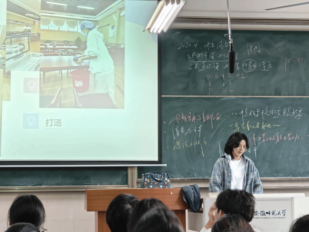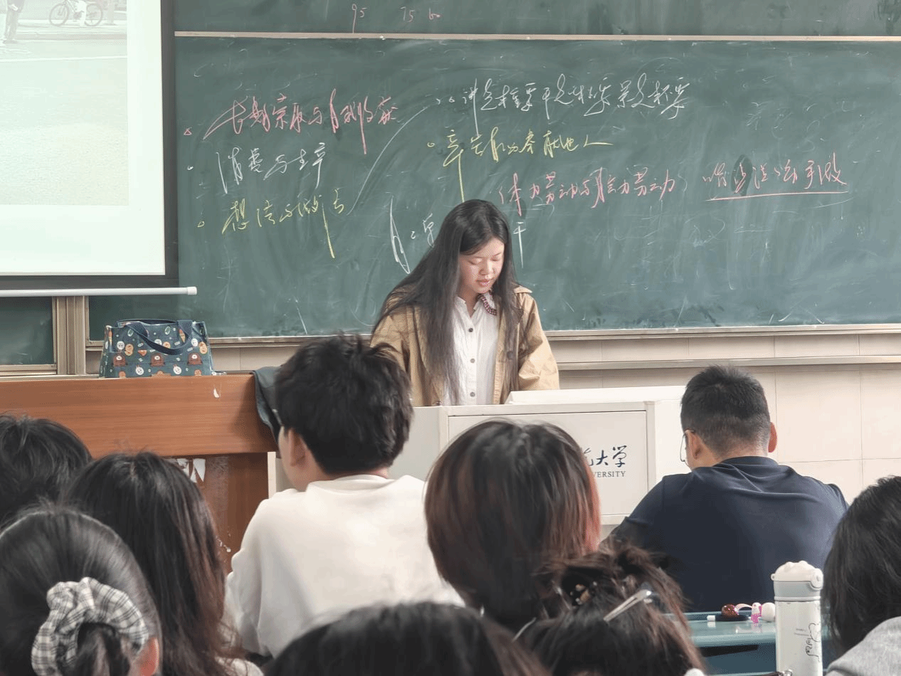 随后,马星宇以“在劳动中长才干”为题作了一场主题班会,对同学们开展了一场从理论到实践上的劳动观教育。他首先对各组的汇报进行点评。他表示,短短一周的劳动实践让同学们在劳动过程中能够收获对劳动价值的体悟,还能增进同学间的友谊与默契,成为每位同学心中弥足珍贵的回忆。他就劳动实践教育课安排的政策依据做了详细解读,说明了课程在整个专业人才培养方案中的重要地位,表明了纳入学年素质综合测评的安排,提醒同学们在完成劳动实践后认真做好总结。他表示,要在劳动中思考“长期索取与自我收获”“消费与生产”“想法与做法”及“脑力劳动”与“体力劳动”“自己单干”与“集体群干”等几对关系,认真体悟劳动的价值,要注意纠偏“讲起来重要、干起来次发、累起来不要”的现象,从而从内心深处理顺辛苦自己与奉献他人的要义。他还就专业采风、社会实践等与专业理论学习拓展相关的劳动实践做了梳理,指出同学们要在课堂认真学习专业理论、打好理论功底的基础上,在组团实践中深入基层一线,跑新闻、写新闻、创新闻。最后,他以一首自己原创的诗对23新闻学专业劳动实践周作了总结——“桂子香飘满花津,新闻学子散作群。劳动光荣从小听,行知楼里学要领;扫地除灰理草坪,打饭盛汤把车顺;生活技能心里明,身体力行笑语盈”。