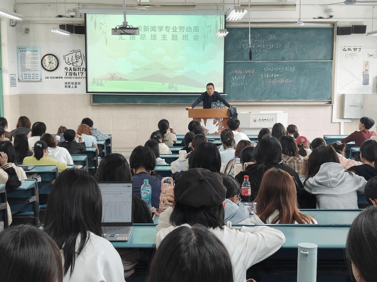 为回顾劳动周的成果,发扬劳动光荣的精神,10月12日下午,2023级新闻学专业于行知楼2050202召开劳动周汇报主题班会,会议由2023级新闻学专业辅导员马星宇主持,全体23级新闻学生参与。