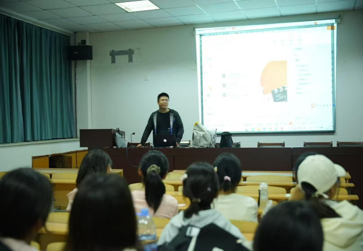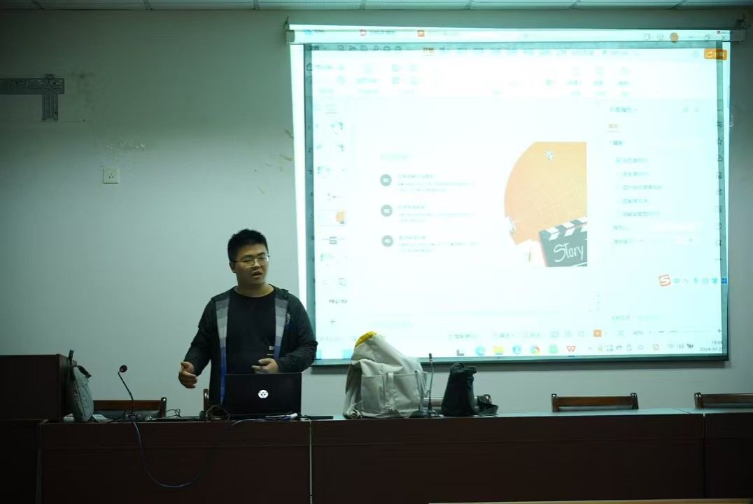 在最后阶段,他向新生展示了学长、学姐们的优秀作品,充满独特的魅力和匠心独运的作品让同学们领略到了动画作品的精美,以及创作者投入的精力与情感。