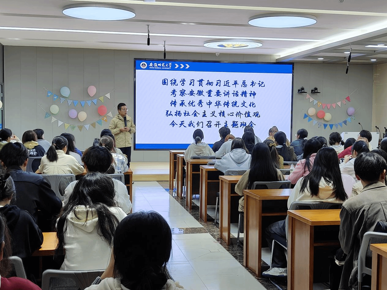 为引导同学们积极践行文明行为,全面提升自身综合素质,10月31日晚,2023级新闻学专业于大学生活动中心一楼召开“六个文明”教育实践主题班会。会议由辅导员马星宇主持,2023级全体新闻学专业同学参加。