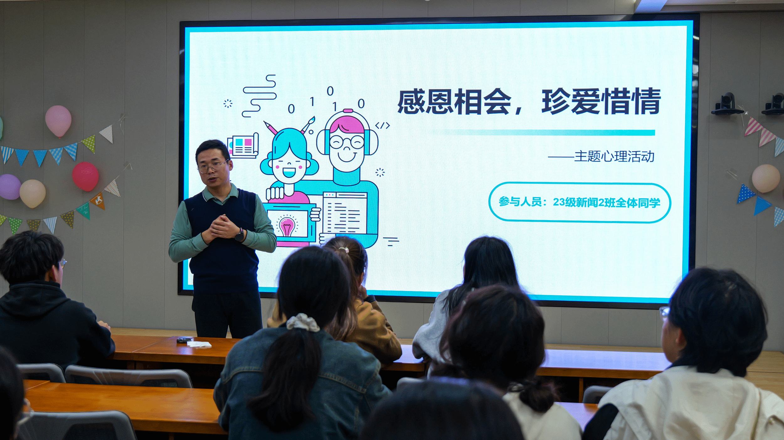 10月31日晚,2023级新闻2班“10·25”心理健康月主题活动开展,班级全体同学齐聚大学生活动中心学生之家,一场别开生面的心理活动节正悄然拉开。本次活动旨在通过一系列富有创意和意义的环节,引导同学们学会感恩,珍惜身边的人和事,并且也通过集体互动增进彼此间的了解和友谊。