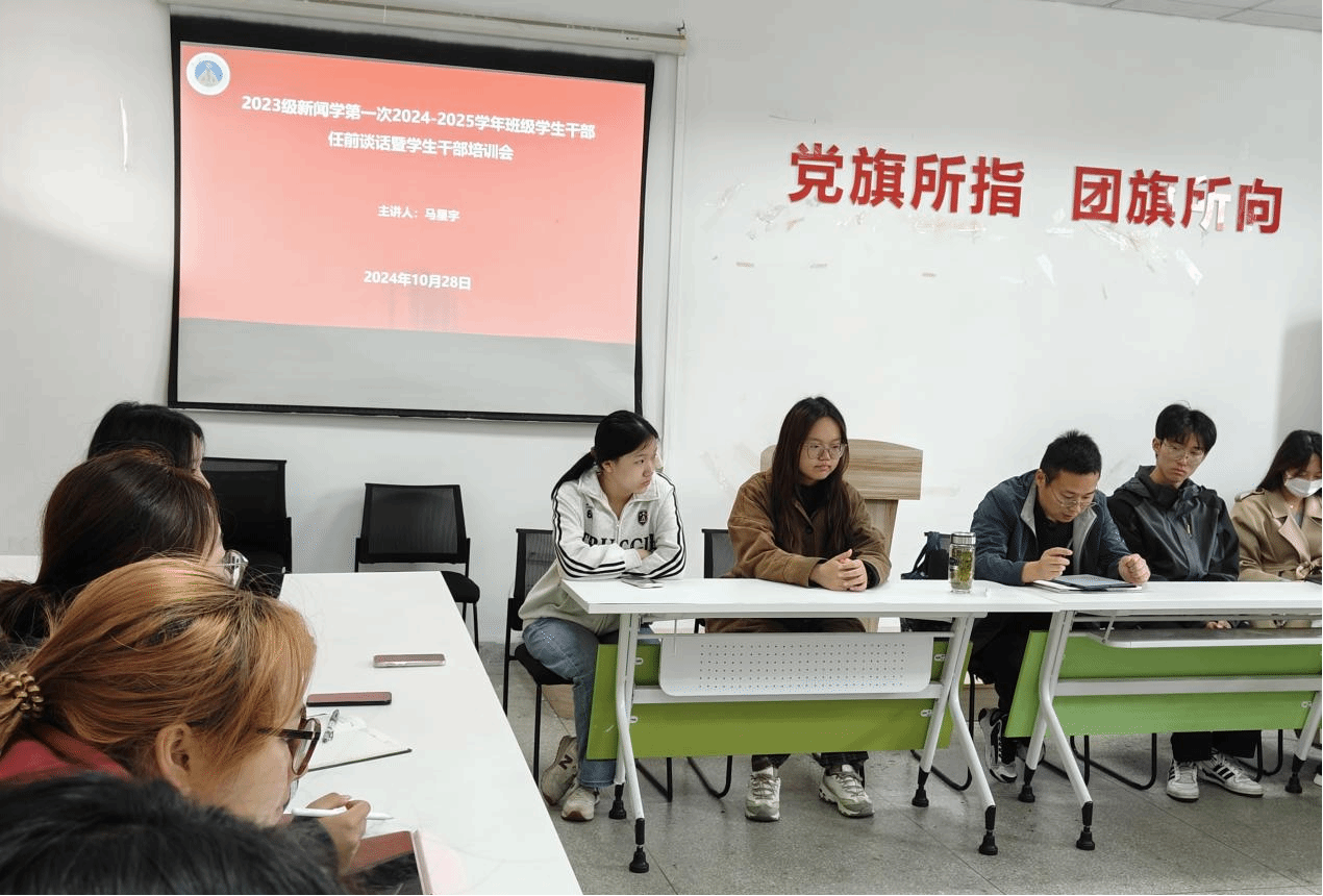 10月28日上午9时,23级新闻学专业展开学生干部任前谈话会暨学生干部培训会,会议由辅导员马星宇主持,23级新闻学专业全体班委参与。