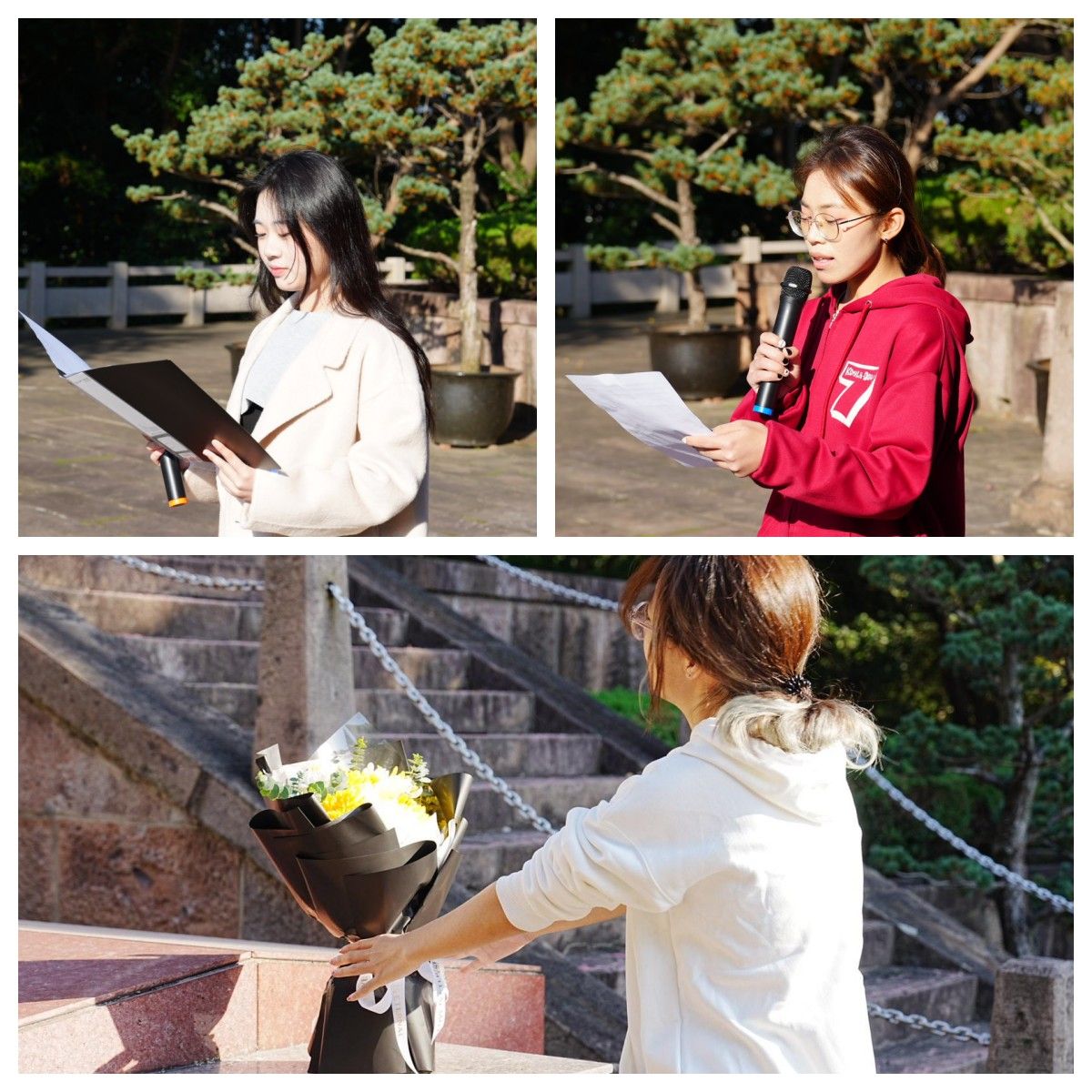 活动伊始,同学们有序集合在烈士陵园前。在庄严肃穆的氛围中、主持人付于丹深情的引领下,悼念活动正式拉开帷幕。学生代表郁金桐手捧鲜花,怀着崇敬的心情缓缓走向烈士纪念碑,将鲜花轻轻放在碑前,鲜花的芬芳,寄托着学生们对革命先烈的无限哀思与崇高敬意。紧接着,班长司雨华在纪念碑前发言。她回顾了革命先烈们为了国家和民族的解放事业所做出的巨大牺牲,号召同学们铭记历史、珍惜当下,将革命精神传承和发扬下去。她的发言更加激发了大家心中的爱国热情和责任感。