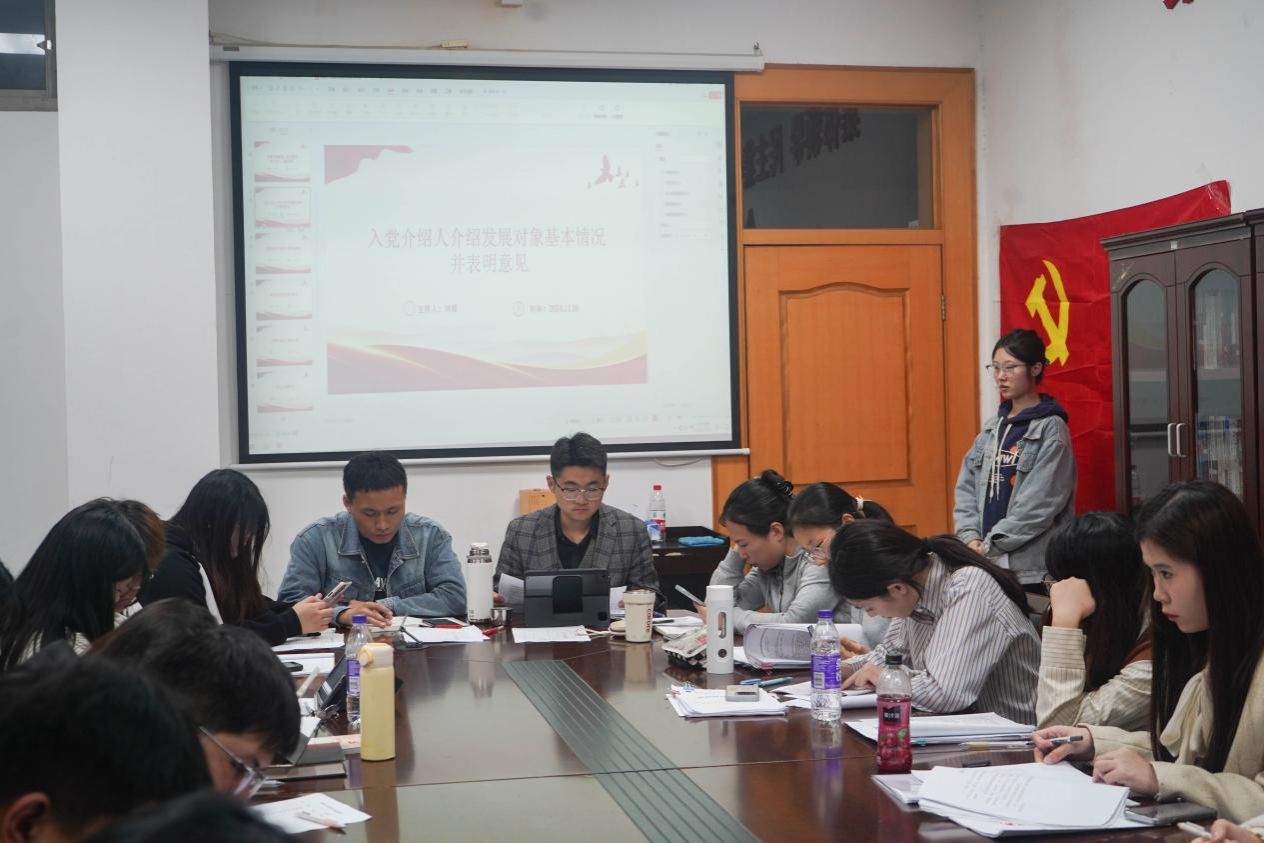 会议严格按照党组织接收预备党员流程进行,纪检委员汪笑笑同志向大会报告党员到会情况。发展对象李苗苗等17名发展对象逐次向党组织汇报个人情况、对党的认识及入党动机。入党介绍人逐个介绍了17名发展对象的培养过程和主要情况,对他们的表现进行了评价,并对他们能否入党表明了意见。宣传委员葛黎明代表支委会向大会报告李苗苗等17名发展对象的培养过程和审查情况。经过函调、政治审查、群众座谈会、入党志愿书填写的审查,17名申请人具备预备党员条件。经与会党员对发展对象能否接收为中共预备党员进行充分讨论并发表意见,李苗苗等17名发展对象依次对大会与会党员所提意见进行表态。经与会正式党员进行投票表决,大会同意接收李苗苗等17名发展对象为中共预备党员。