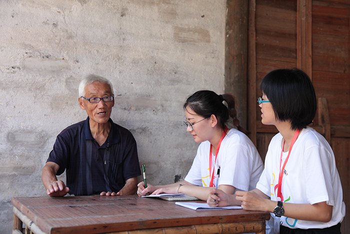 团队首先对退休老教师方大金进行了跟随走访,听他介绍了灵山的古建筑和历史故事,乘着时机成员又对其进行了专访,询问了关于人生经历、比较难忘的事以及对当地的看法等。下午,成员们看望了老房子的主人,主要采访了女主人方光琴,了解到他们家的房子是政府免费修缮的,三百年历史,是村里最古老、保存最完好的;谈及生活现状,她表示,目前生活还是比较满意的。其次根据乡村振兴背景下传统文化的发展,以新老照片为依托,进行传统资料的整合,结合文化自信,做古村落的品牌策划。团队成员穿行于灵山的大街小巷,与当地村民互动,采访手工艺者,探索、建筑、官道、农田、树林等,将人文与自然相结合,调查青石板、梯田、老房子的历史与在村民心中的印象,从小处着笔,深挖文化底蕴。此外,还跟随采访,摄制了视频资料;拍摄人物特写与街景;航拍古村落整体环境。
