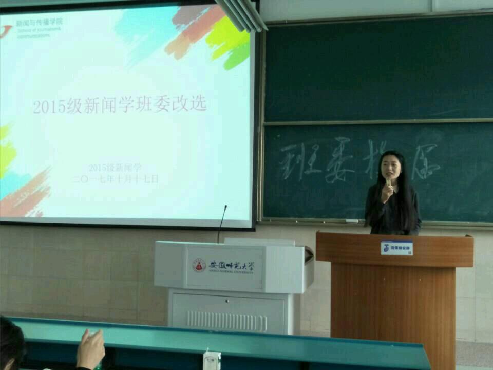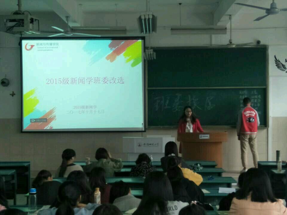 10月18日上午,2015级新闻班在教学楼2050302教室召开了第三次班委会选举,选举新一届班委会成员,本次会议由现任班长江志航主持,全体新闻班成员参与选举。