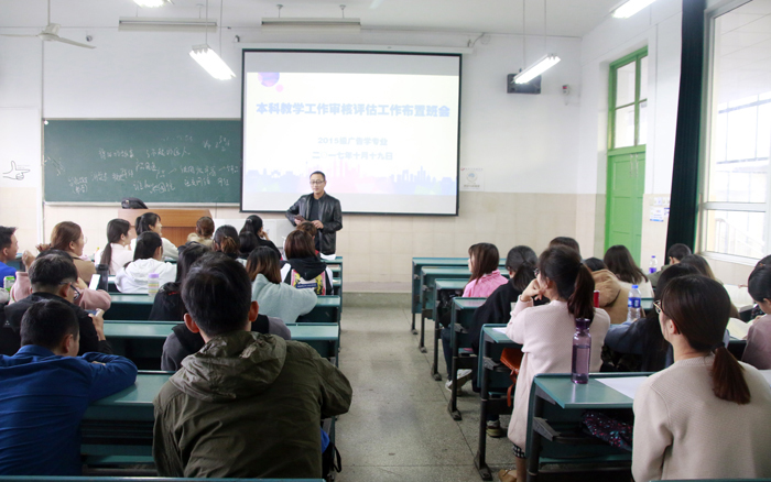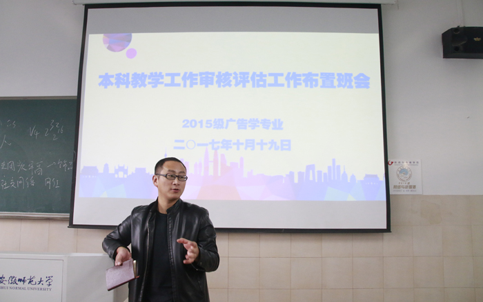 10月18晚、19日下午,2015级播音与主持艺术、广告学专业分别召开了本科生教学工作审核评估工作布置班会,会议由辅导员孙文老师主持。