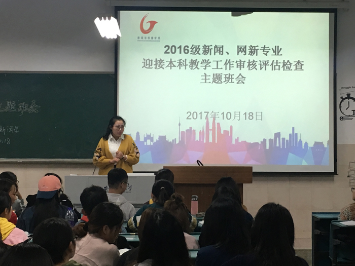 为了迎接本科教学工作审核评估检查,2016级新闻、网新召开了主题班会,班会由辅导员张雁主持,16新闻、网新全体同学出席了本次会议。