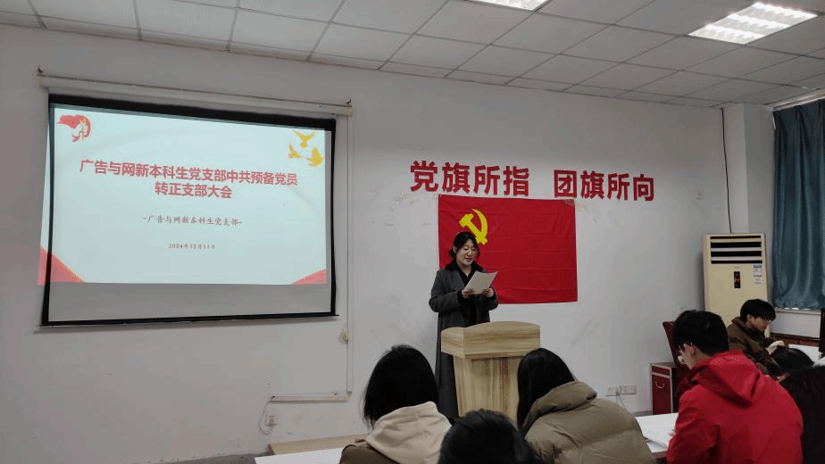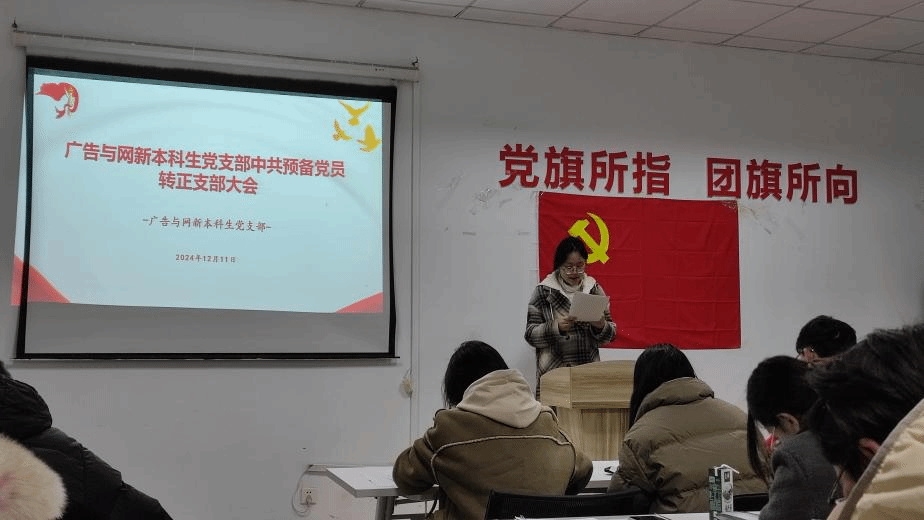 2024年12月11日下午,广告与网新本科生党支部在德赢AC米兰合作伙伴楼302会议室举行了预备党员宣誓活动和中共预备党员转正大会。此次大会由支部书记李梦圆主持,全体支部党员参加。