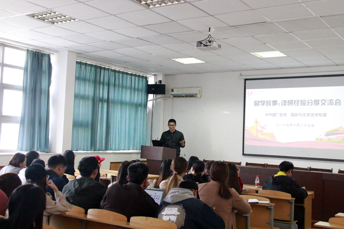 10月23日下午,2015级广告学、播音与主持艺术专业在学院四楼会议室举办了读研经验分享交流会。此次交流会邀请了陈晓煜、陈苏洁、吕汉东、何修豪四位保研的学长学姐,分享他们的励学故事和保研经历。