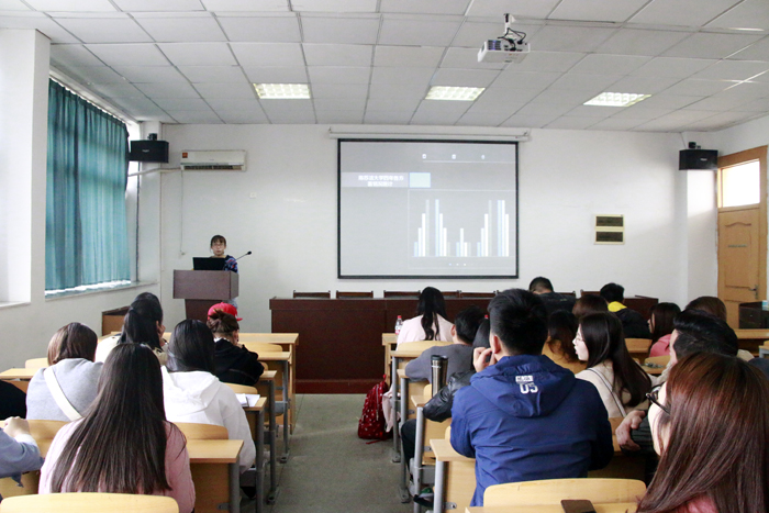 2014级广告学专业的陈苏洁将自己大学四年各方面表现以条形图表的形式呈现给大家,向同学们介绍了大学四年的奋斗历程,从大一、大二时的跌跌撞撞,到大三、大四的孜孜不倦,陈苏洁用亲身经历生动地诠释了坚持的意义,考研贵在坚持,坚持到底就是胜利。