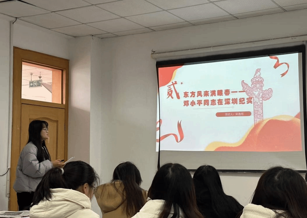 宋逸恬同学分享了《深圳特区报》著名的通讯——《东方风来满眼春》,文章内容将真实性、实效性、重要性融为一体,展示涉及改革开放理念的深化和实践探索。而文章采用纵式结构,以邓小平考察的时间为线索推动全面视察过程,具有很强的可读性。她还就文章的写作手法做了分析,表示语言生动又运用比喻拟人的手法。