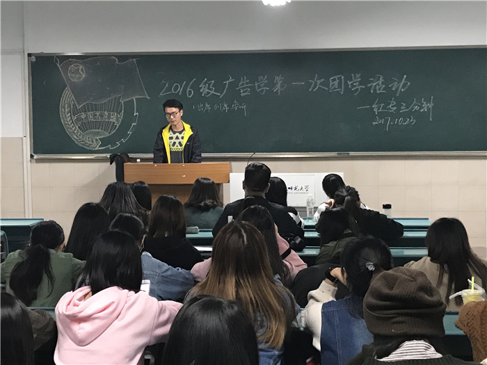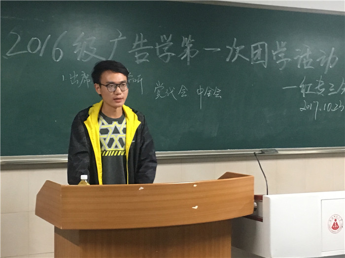 在党的十九大如火如荼地进行之时,安师大2016级广告学团支部紧跟党的步伐,于10月23日晚七点邀请了2014级新闻学优秀学生代表何修豪进班,就党的知识开展了一次颇具教育意义的团日活动。