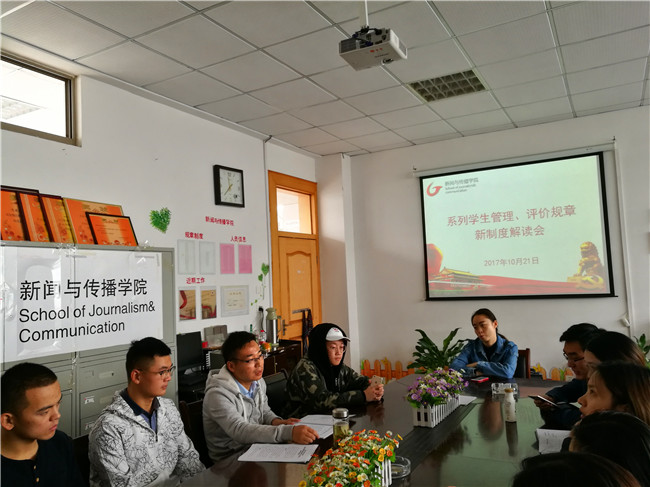 为配合学校开展本科生教学工作审核评估工作,进一步加强学风建设,促进优良校风的形成,10月21日中午,辅导员马星宇主持召开了2014级播音、空乘、文管专业留校学生班会,会议围绕“系列学生管理、评价规章新制度解读”和“迎评估,强学风,树形象”迎评动员开展。会议伊始,马老师向大家解读了新修订的《普通高等学校学生管理规定》,并与现行版规定进行了逐条集中对比学习,特别是对新规定中涉及与学生工作密切相关的内容调整,如学生自我管理、学生违纪处理等方面做了深入学习、讨论,努力让每位毕业班学生了解新规定、自觉遵守新规定。马老师说“大家都是应届毕业生,希望各位同学在学校的最后半年时间里更要遵守相关规定尤其是校纪校规,对于一些学分还未修满的同学,请各班学习委员及其他班委做好督促工作,务必让每位同学都能够顺利毕业。”