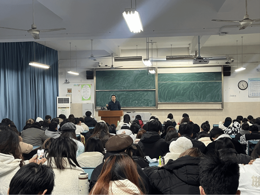 最后,马老师对本次班会进行总结,再次叮嘱同学们要时刻牢记安全第一,合理规划假期,积极提升自我。希望同学们在寒假中既能放松身心,又能学有所获,以饱满的精神状态迎接新学期的到来。鼓励同学们在寒假期间既要注重安全,又要为实现未来梦想积极行动。希望大家以寒假为新起点,在未来的学习与创作道路上不断探索、勇于创新。他最后做了深情寄语,希望三个专业学生打破壁垒,组团合作,发挥专业协同优势,在实践与学业中携手奋进。