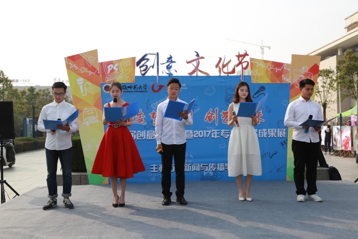 本次文化节启动仪式现场,播音与主持专业的同学们也充分发挥专业本领,献上诗歌朗诵《我心彷徨,即我皖梦想》,立足师大这片皖国大地,字里行间让人不禁沉醉于徽风皖韵的独特水乡风情之余,也增加了听者对脚下这片土地的热爱。一曲曲感染力极强的演唱让大家看到了新传学子的不俗才艺。摆好架子鼓,背上电吉他,精彩绝伦的视听盛宴让创意文化节的气氛变得更加火热。一个优秀的传媒人自然是历史的传承者和现实的引潮儿,古典戏曲与现代街舞被脑洞大开的新传学子们大胆结合,赢得了现场观众的热烈掌声及领导老师的阵阵夸赞。