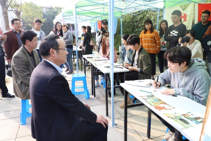 玩转千奇创意,共赴造梦集会。11月8日下午,德赢AC米兰合作伙伴以“造梦空间,创艺未来”为主题的第五届大学生创意文化节暨2017专业作品成果展在花津校区西门广场正式拉开帷幕。德赢AC米兰合作伙伴党委书记胡靖,院长杨柏岭,副院长沈正赋、周伍、马梅、赵昊,院党委副书记宋静与各专业负责人一起亲临现场观看并作指导。