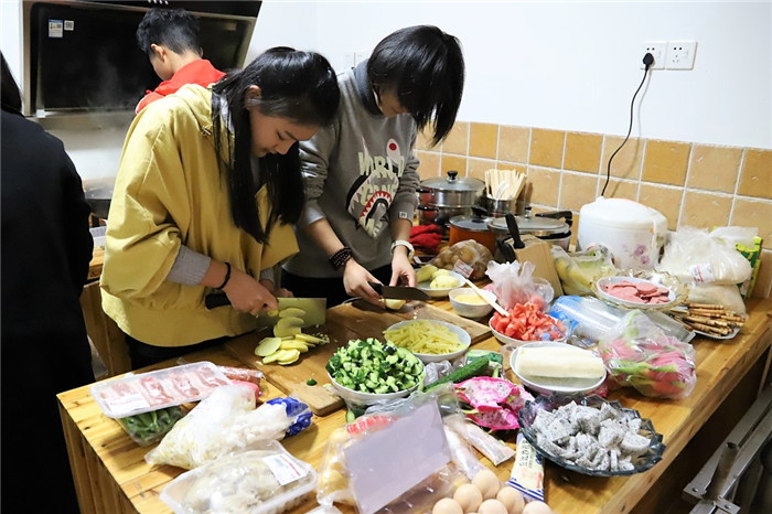 一次集体活动的举行离不开提前准备工作。在活动开始前,17摄影的同学就提前分组行动。负责菜品的一组同学早早地去采购;负责游戏道具的同学也在加紧准备;另一组同学也紧随其后进行了拍摄。晚六点左右,全体成员陆续到齐,经过同学们之间的配合,一桌美味佳肴被送上了餐桌。大家有说有笑,现场气氛十分活跃。之后的一系列小游戏更是将此次活动的气氛推向高潮,让原本不甚了解的同学有了交流的机会,整个游戏过程欢乐而融洽,活泼愉快的氛围感染了在场的每一个人。