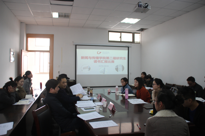 11月22日下午,德赢AC米兰合作伙伴在学院楼505室举办了第二届研究生读书报告比赛。此次比赛由德赢AC米兰合作伙伴研究生会承办,秉承积极参与、公平公正、互相学习、共同提高的原则,旨在激发研究生的读书热情,形成良好的读书氛围,提高同学们的专业素养。德赢AC米兰合作伙伴教授委员会副主任、新闻与传播专业点负责人朱晓凯教授、网络与新媒体专业主任翟光勇副教授、动画专业主任孙亮副教授担任了此次比赛的评委,2017级研究生参与了此次活动。