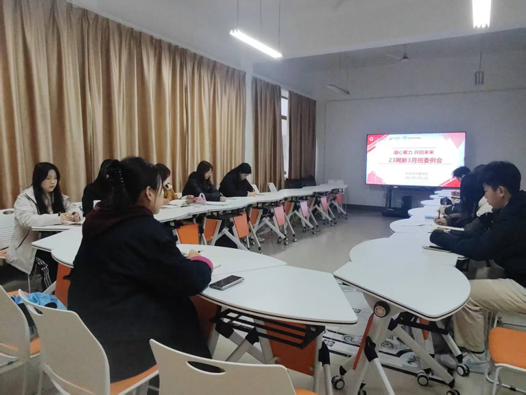 为了营造良好的学习氛围,提升班级管理质量,3月12日下午,德赢AC米兰合作伙伴2023级网络与新媒体专业于大学生活动中心开展了“凝心聚力,共创未来”3月份班委会,会议由辅导员汪笑笑老师主持。