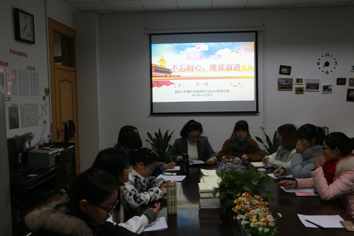 全民学习十九大精神已成热潮,为积极响应学院部署,2016级新闻学于11月28日晚7:00在学院楼三楼会议室召开十九大学习会,此次会议由16新闻1班团支书张吴越主持。辅导员老师张雁出席学习会。