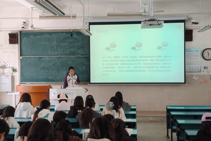 活动分为“走进清明”“祭奠英烈”“红色记忆”“学习英模”四个环节。在让同学们进一步了解中国传统节日、自然节气之一清明节的同时,各班班长、团支书带领同学们重温刘胡兰“生的伟大,死的光荣”的英雄壮举、董存瑞舍身炸碉堡的英勇瞬间以及杨靖宇、赵一曼等抗日英烈的感人事迹。