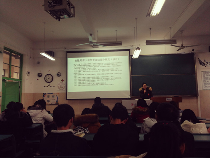不知不觉中,大学生活中的第一次期末考试即将来临,经过一个学期的学习,检验我们学习成果的时候到了。张雁重点强调了考试的诚信问题,明确提出考试不能作弊,作弊在师大作弊是明令禁止的。她带领大家认真学习《刑法修正案(九)》有关考试作弊的法条、《国家教育考试违规处理办法》(教育部令第33号)、《vwin德赢ac米兰官方网学生违纪处分规定(修订)》、《vwin德赢ac米兰官方网普通全日制本科生考试管理办法(修订)》等文件相关规定,提升大家考试纪律意识,教导大家要诚实做人,诚信考试;同时通过剖析实际考试违纪典型案例,引导大家自觉遵守考试纪律,认清违纪作弊的严重性、危害性,抛弃侥幸心理,听从监考教师统一安排,抵制和预防违纪作弊行为的发生。对于屡教不改、顶风违纪的学生要按照规定严肃处理。