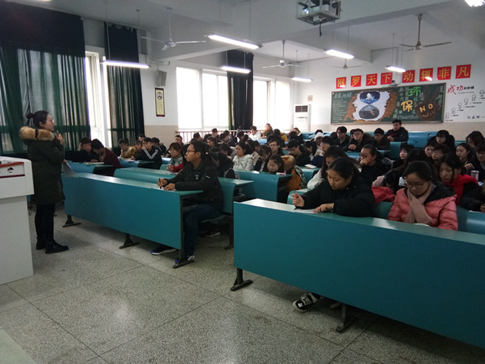张雁通过芜湖市近几年高校发生的火灾事件图片、视频强调宿舍卫生安全的重要性,并给大家介绍面临火灾时应该怎么做,以及如何逃生避险的方法;通过近期同学们发生的乘坐出租车丢失钱包物品等来强调保管个人物品的意识;通过近期学生家长们收到的诈骗短信来告诫同学们提升防骗意识。此外,就即将到来的元旦及期末考试假期,张雁提醒大家严格请销假制度,按要求及时要做好离校登记,注意人身和财物安全。