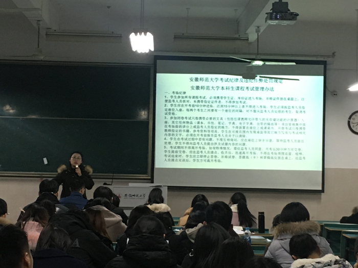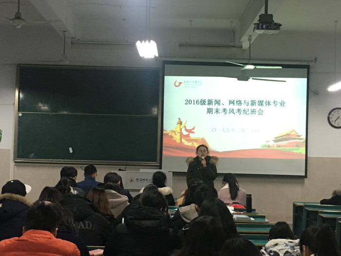 12月20日晚7:00,16级新闻与网新专业于教学楼2030403教室开展期末考风考纪班会,布置考试事项。会议由辅导员张雁主持,16级新闻与网新专业全体同学参与了此次班会。
