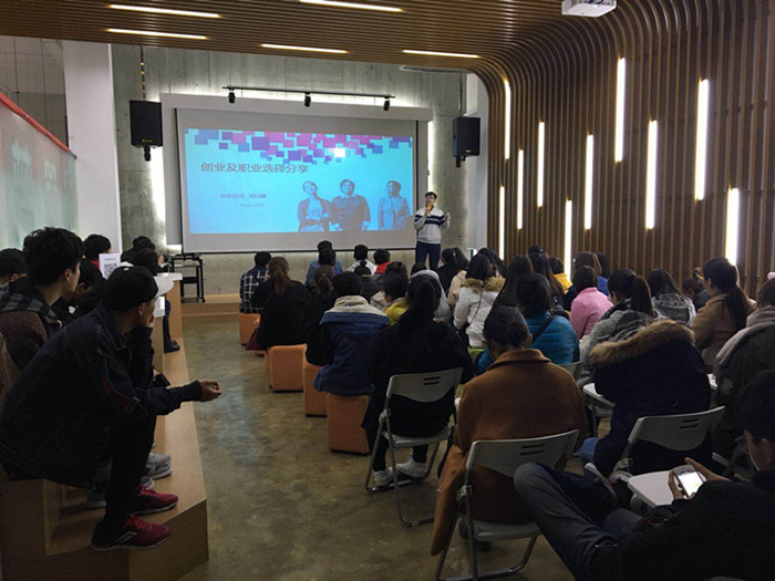 学院师生在工场的交流大厅聆听了一场以“创业及职业选择分享”为主题的学习交流座谈会,主讲人是胡莱游戏负责人之一刘冠麟。刘冠麟以“梦想”为关键词,与在座同学畅谈“创业梦”,并与大家分享自己丰富的创业经历以及创业道路上的人生感悟。新传学子结合讲座内容与个人经历,积极提问,发表个人看法,获得了刘冠麟的肯定。