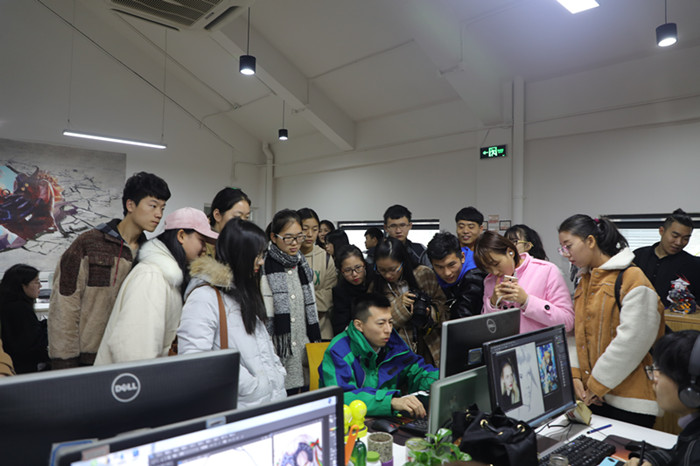 同时,工作负责人员带领师生代表认真参观,详细了解了公司发展历程,随后学院师生自行参观工场内部环境,并与优秀学长学姐展开了热烈的交流和探讨,学习到了一些图像处理技能。现场气氛热烈,同学们收获颇多。